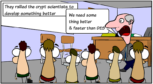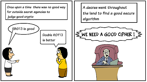 Lets face it: modern encryption techniques can be an extremely boring subject, so instead of just explaining them with words, we’ve put together a comic strip that talks about the history of encryption, inspired by Jeff Moser’s stick figure guide to AES. Note: clearly we cannot convey everything about encryption’s history in a comic strip.
