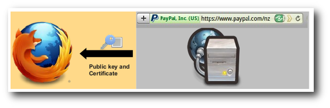 The browser then uses the public key, to encrypt a random symmetric encryption key and sends it to the server with the encrypted URL required as well as other encrypted http data.