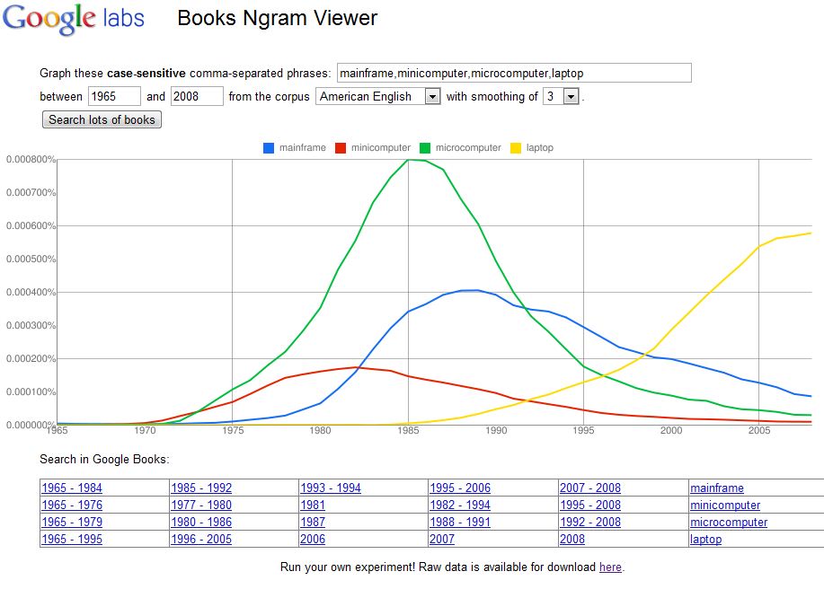 Google has quietly released a massive database that's as scholarly a tool as it is fun to play with. Called Ngram * this digital storehouse contains 500 billion words from 5.2 million books published between 1500 and 2008 in English, French, Spanish, German, Russian, and Chinese. It lets anyone search for words and short phrases, and chart how they have been used over time. Just a couple of clicks reveals how "women" overtook "men" in usage in the mid-1980s, and how "grill" grew more popular than "fry" in 2004.