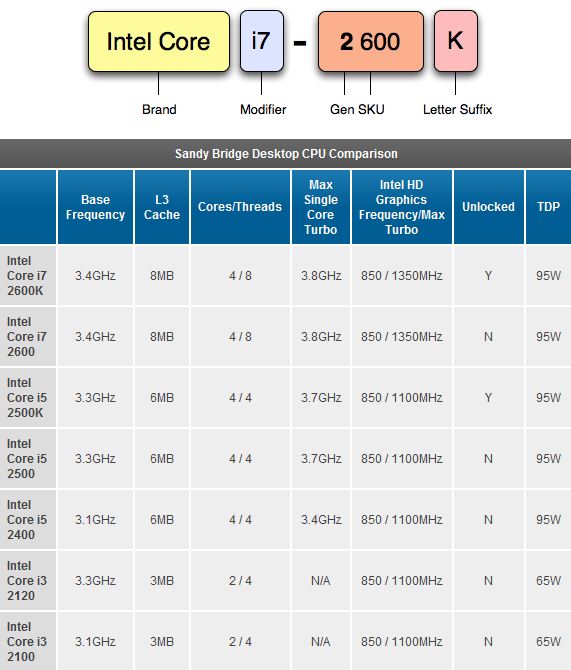 The first CPUs will ship very early in 2011 for both desktops and notebooks. The architecture discussion we have here today applies to both. The CPUs won’t be called Sandy Bridge but instead will be called Intel’s 2nd generation Core i3/i5/i7 microrpocessors. The naming system will follow this format we outlined in our earlier look at Sandy Bridge: