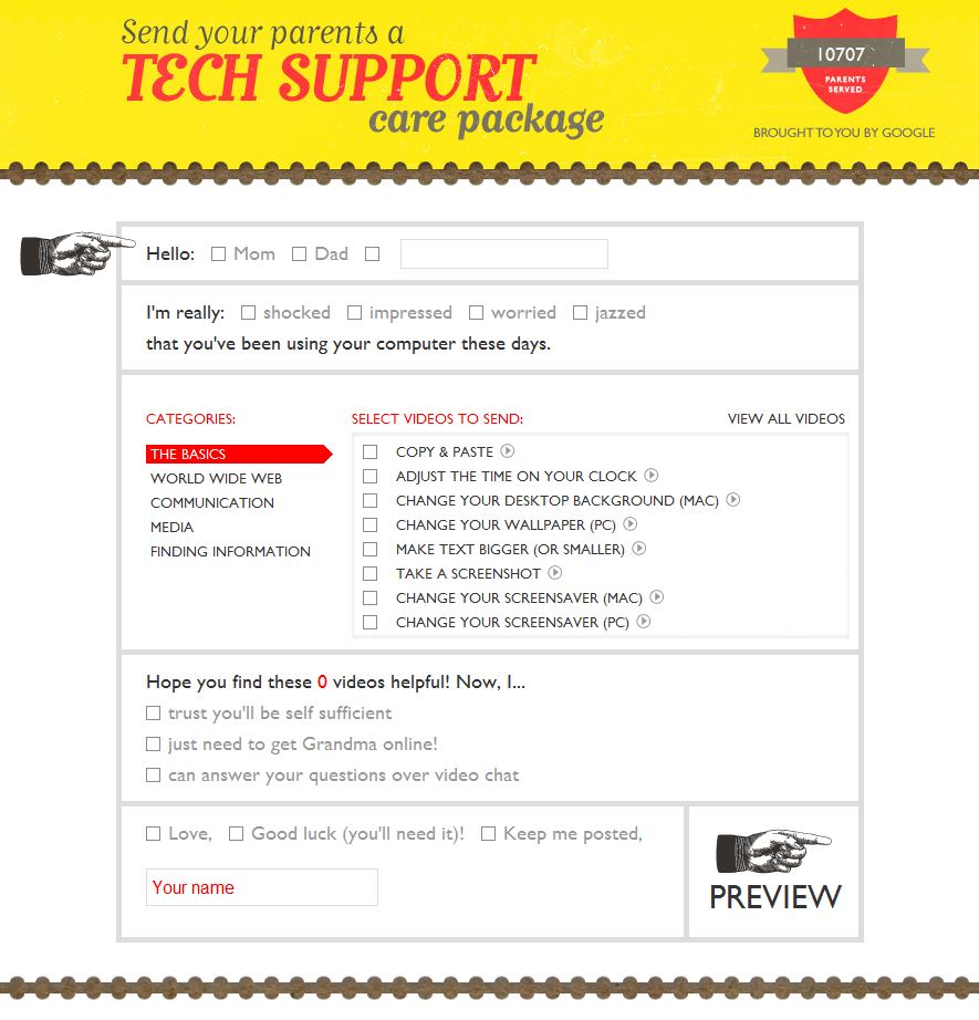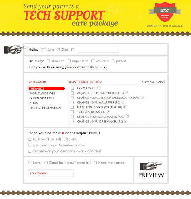 According to a Google blog post, the site allows users to select more than 50 basic how-to videos they could send to parents — or frankly, anyone else who might need a little tech help. The videos cover topics from copying and pasting to sharing large files. The recipient will receive a message from the sender, along with a link to the selected videos.
